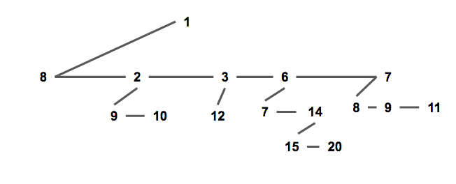 通常我们使用左儿子右兄弟表示法储存一个配对堆(如下图),从下文可以看出这种方式可以方便配对堆的实现。